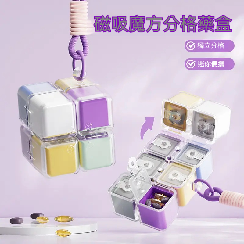 【磁吸魔方藥盒】吃藥也能玩出黑科技感✅磁力拼接 ✅密封防潮✅分區獨立✅指尖解壓✅一吸一合再也不怕找不到藥