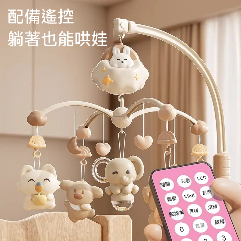 【寶寶的助眠神器床鈴來了!】哄娃入睡的助眠曲+護眼燈光+360度慢速旋轉✅ 遠程遙控✅ 安全材質✅ 功能豐富——助眠曲+模擬胎音+兒歌