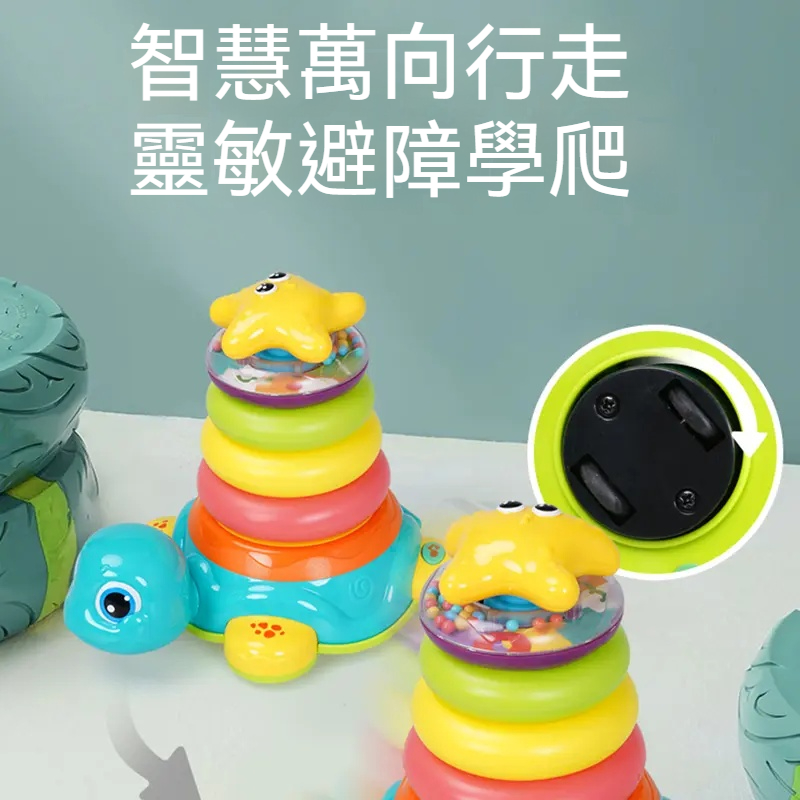 【可自動掉頭避障的烏龜疊疊樂來了!】趣味無線,自動掉頭+音樂播放✅進口ABS塑料+可啃咬+無毛刺✅龜殼都能360°旋轉✅寶寶的助爬小龜✅鍛煉寶寶手眼協調和顏色認知