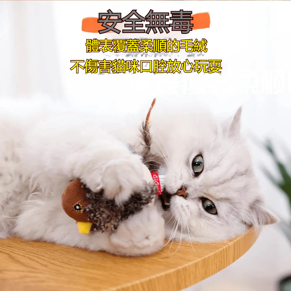 【發聲小鳥貓玩具】讓小主子瘋狂尖叫的魔法神器!✅ 仿真羽毛+逼真鳥叫 ✅ 內置響紙設計! ✅ 環保材質耐咬耐撕,安全不掉毛